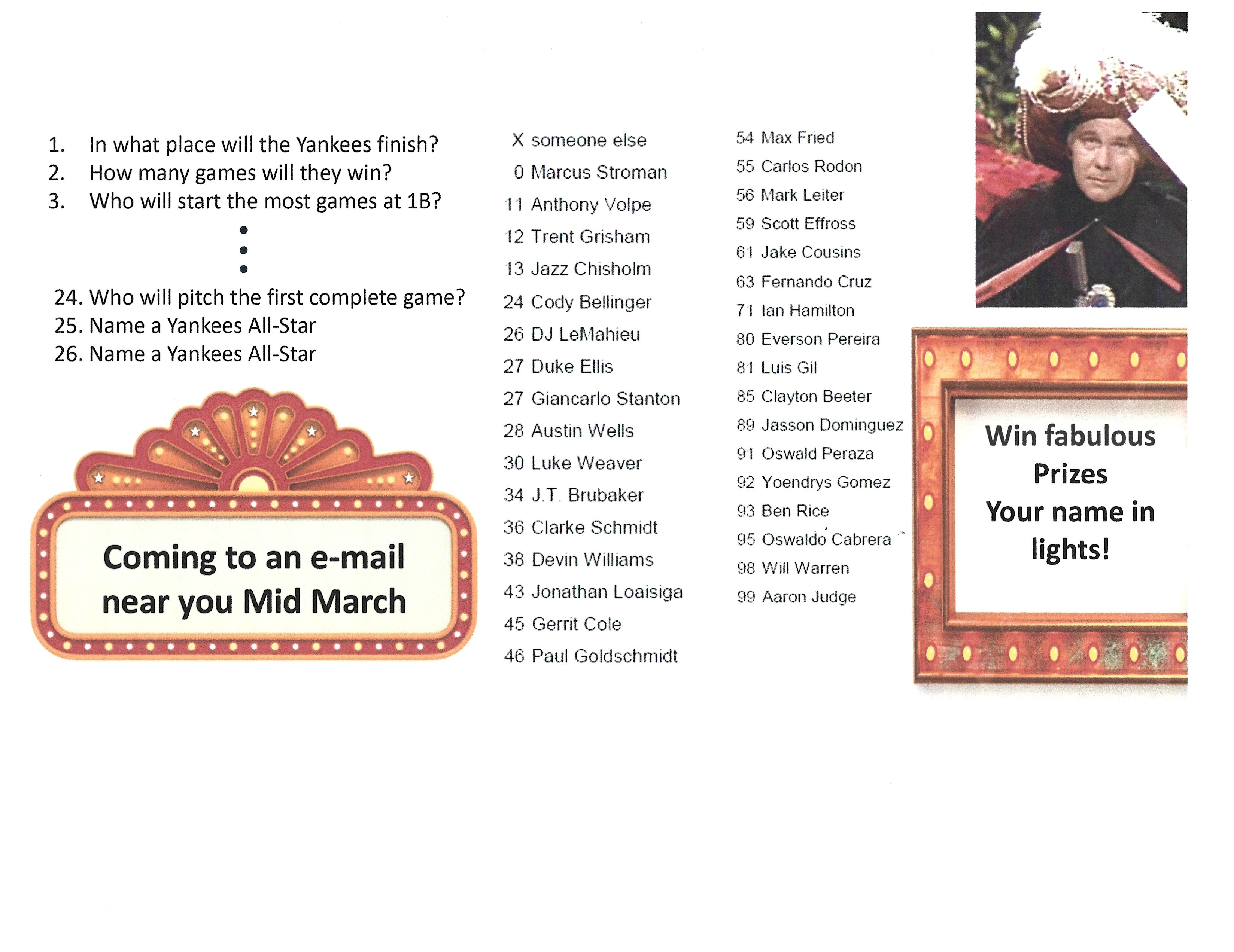 (3) Dianne Davidoff, our “I AM THE I.T. GUY”, announced that only officers and chair persons would have their names and emails listed on the website. She also stated that the Little League Yankees would also be on the site.